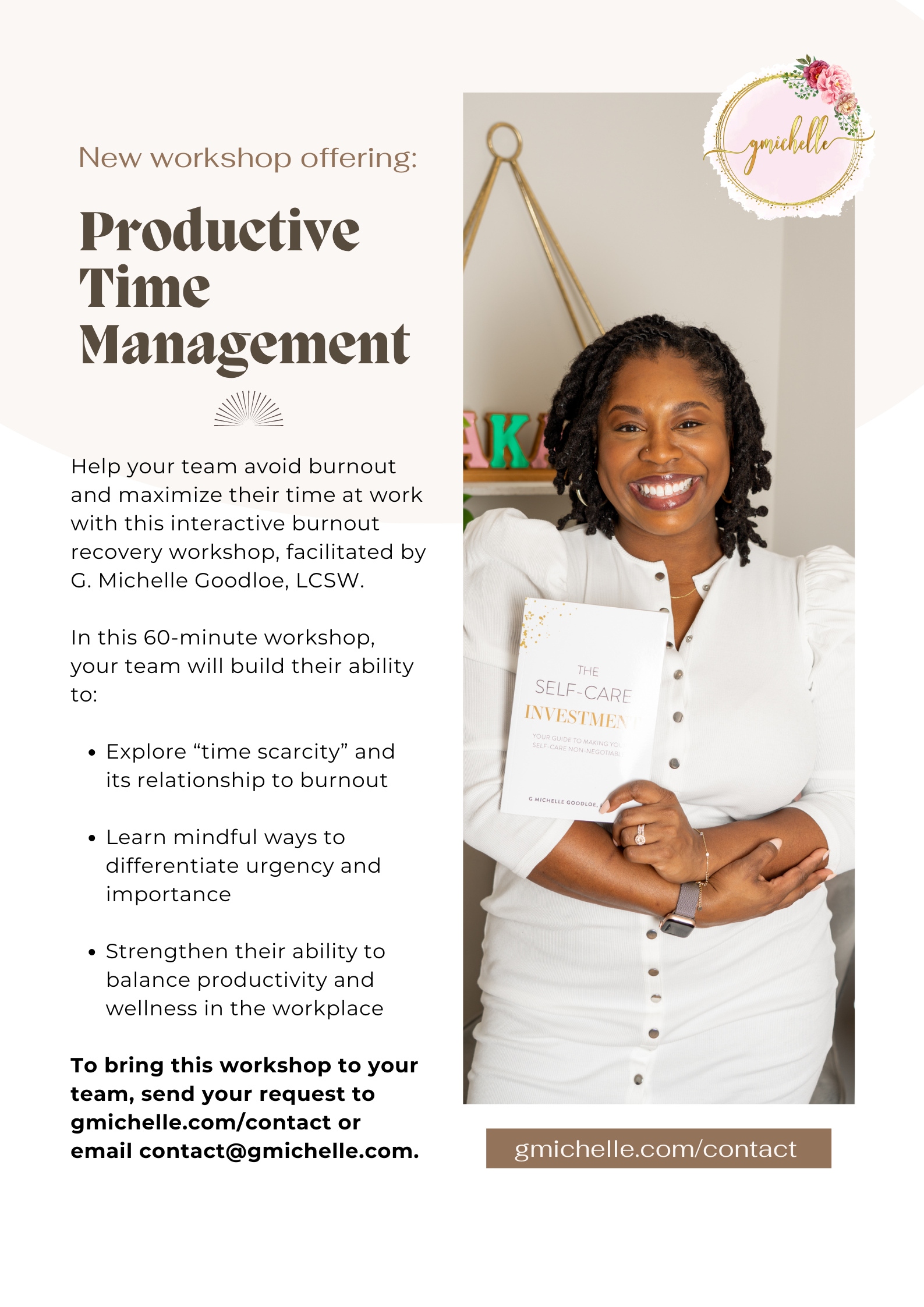 In my workshops, Productive Time Management and Resourceful Task Delegation, I help exhausted, hard-working people discover practical ways like these to not only recover from burnout, but begin designing the well-rested lives they were always meant to live.